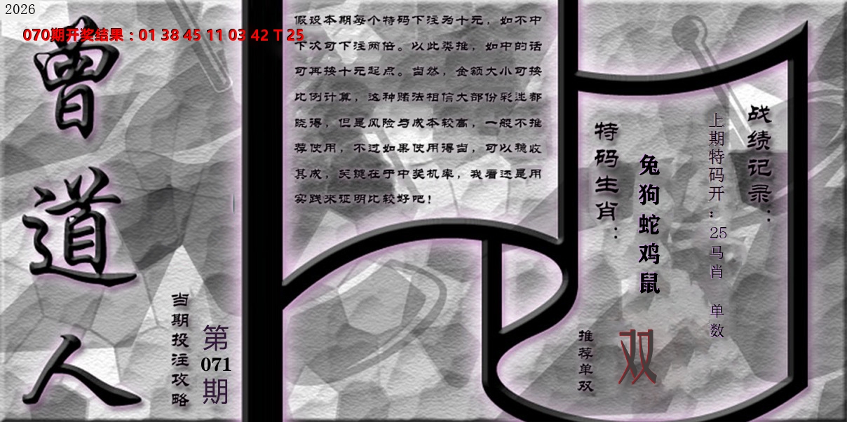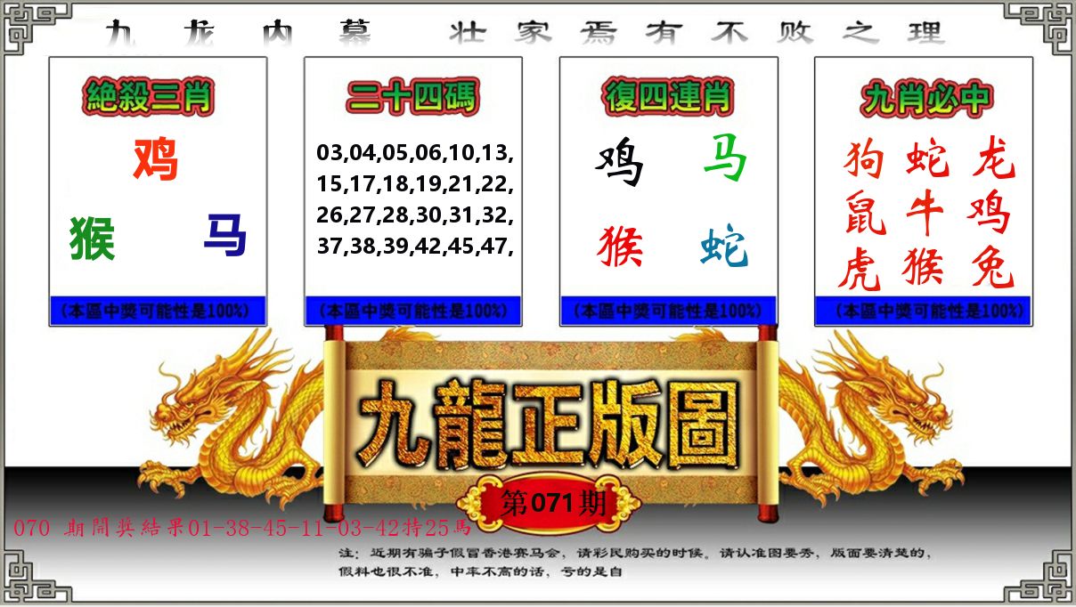 071期:绝杀三肖【鸡鼠马】开:??准